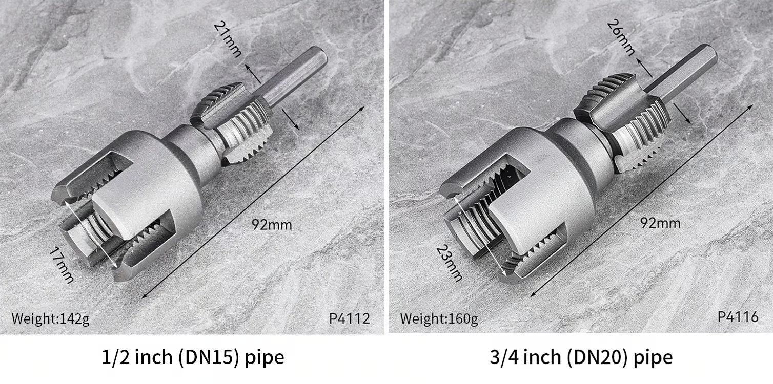 Dual-Function Threading:Create both internal and external threads with one tool — no need to switch. Choose the size that fits your job: 1/2" or 3/4". Perfect for fast, accurate pipe prep.